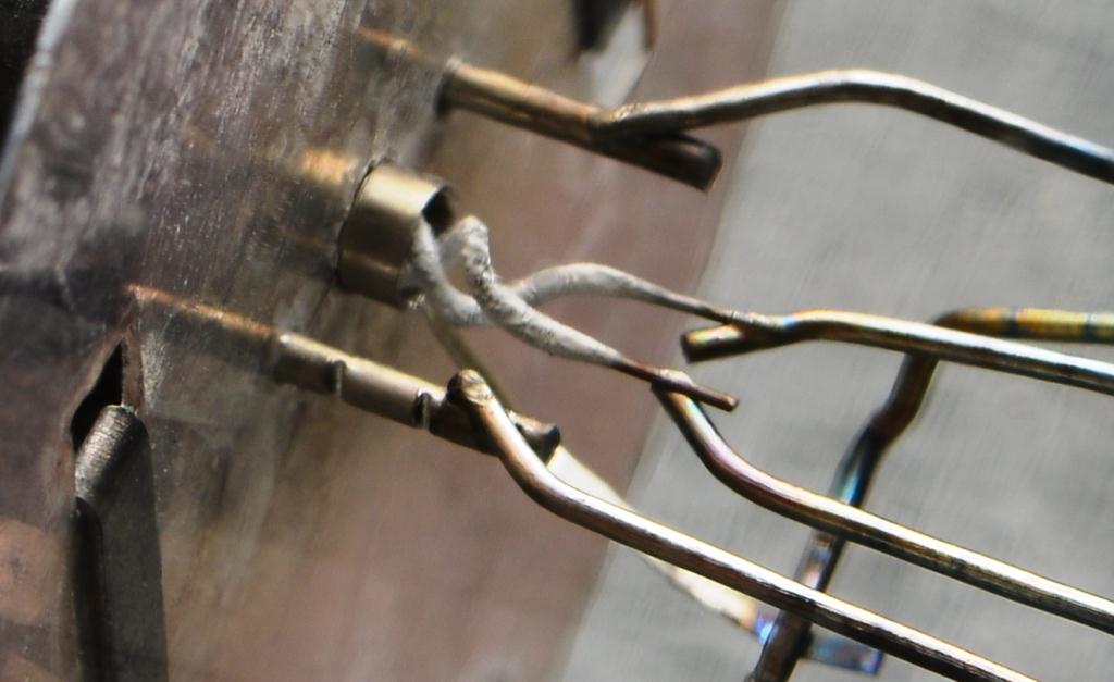 The filament bias resistors are at the front. The connection between them serves as star ground point. All signal wiring is done with solid core silver wire.