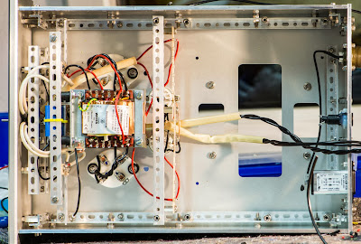 The main power transformer sits on the top and will later be hidden under a transformer cover: