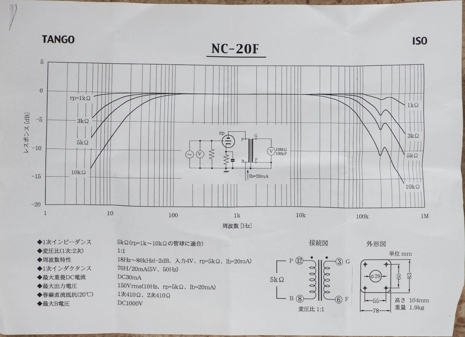 Like all Tango transformers, the NC20 was delivered with a very good data sheet: