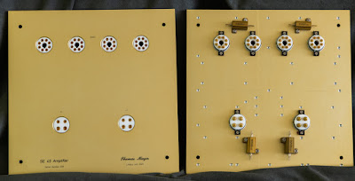 Filament chokes, critical capacitors and she input transformer are mounted directly to the top plate for short signal wiring.