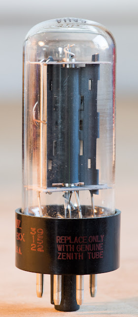 DeleteOlder Sylvania and some GE 6CQ4s have the glass supports at the top and bottom of the cathode like the Westinghouse you took apart. The 6DE4 types did not have the glass supports. The AU was the first of this type I have seen with the glass supports. It is interesting to see the variants made by manufacturers through the years. Glad to see you show that lower power guts were stamped with higher power types to save money (fool customers). The ones with the 1,2A heaters appear smaller in guts than the 1,8A ones. Notice that the insulating spiral in octals is not connected to a pin while ones with 9 or 12 pin bases do. Only the 19DK3 shows this in the pinout, no others do. Those pins were never connected to a voltage between the cathode and heater or any other signal/voltage. Dampers are great B+ rectifiers - slow warm-up time and low voltage drop, higher current capacity than standard 5V types and cheaper. Interesting you show the internals of various numbers. If you get an RCA 'dark heater' type to show the guts, show it with another of the same number that is standard. An example would be 6HB7.